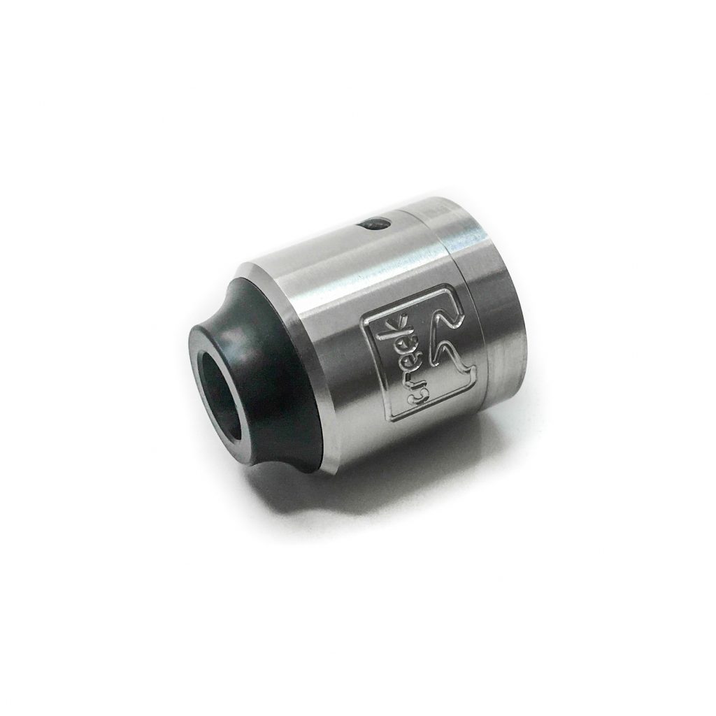 The Creek is actually suitable for both MTL and DL vaping. This is achieved by installing the Positive Post made for each vaping style, both coming right out of the box. Each Positive Post features a proper sized path of air flow inside. One DL oriented with cross section similar to a hole D≥4mm and one MTL oriented with cross section similar to a hole D≥2mm. Likewise, Creek’s Top Cap design incorporates one different side slot on each side, one large / DL oriented with cross section similar to a hole D≥4mm and one small / MTL oriented with cross section similar to a hole D≥2mm. Long story short: You choose the Pos Post you prefer and regulated it with the corresponding side slot of the Top Cap.