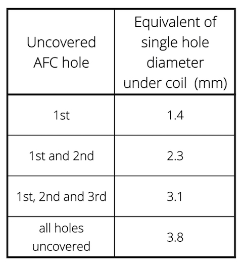 This is the equivalent single hole diameter you get when you adjust the Ring to 1 / 2 / 3 or 4 open holes.